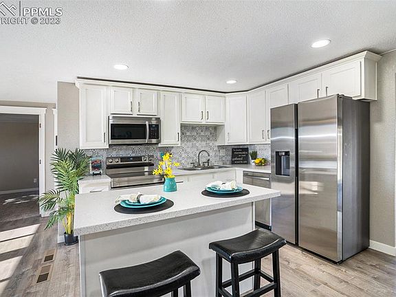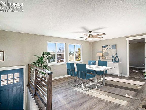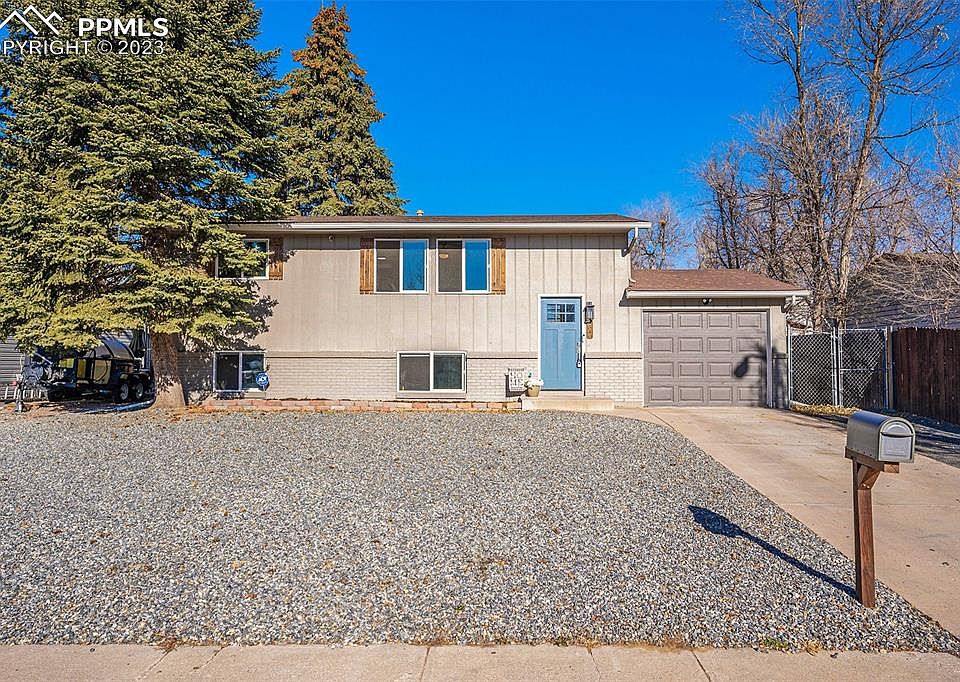 Welcome home to this lovely 4 bedroom, 2 bath bi-level with 1 car garage located in Pikes Peak Park. The abundance of natural light immediately greets you as you walk inside, quickly drawing you upstairs to the large, open layout. Custom paint and newer flooring throughout naturally compliments the modern kitchen, with custom tile backsplash, sleek countertops, matching stainless steel appliances and plenty of cabinet space. 'The two large living/family rooms, one on each level, provide plenty of room for large gatherings with family and friends or room to create your own in-house gaming space. The large primary bedroom has two closets for all your personal belongings and plenty of space for a sitting area. Home features two bathrooms with beautiful custom tile work, updated fixtures, new integrated sink vanities and a walk in shower in lower level bathroom. No HOA or Covenants. Located within minutes of Fort Carson, Pikes Peak State College, local schools, shopping and more, this home is priced to sell!