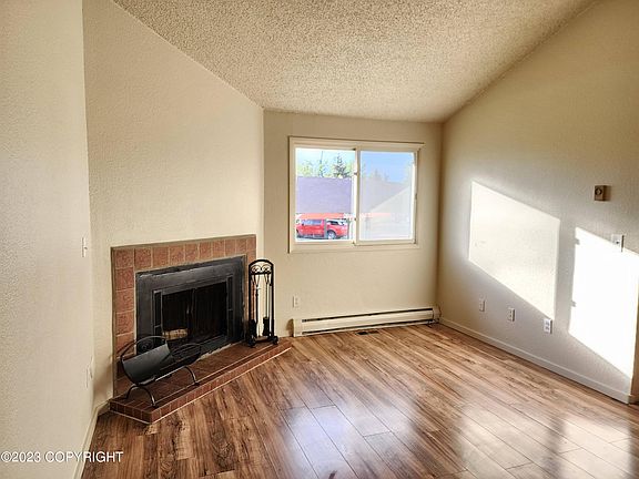Rare Eastside 3 bdrm condo. Why rent when you can own this ranch style condo in peaceful setting next to beautiful woods & Russian Jack Trail. Open kitchen leads to Living Room w/ vaulted ceiling & cozy fireplace. Unit has stack Washer Dryer, designated Carport w/ onsite Storage rentals available, and basketball court. Close to UAA, U-Med district, Hospitals, JBER, shopping, schools.