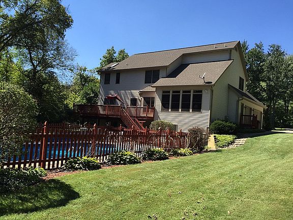 Beautiful Custom built home just minutes to 275 in a private woods like setting on 5 acres. Large inground pool, hot tub, brand new kitchen w/ 42'' cabinets and quartz countertops. Finished lower level w/ walkout, and many more upgrades.-- Storage shed in As-is condition