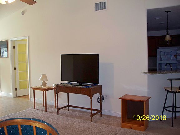 This is a one owner home, with a spacious floor plan, that offers a split floor plan, two bedrooms, 2 bath room and a Den or 3rd bed room. The kitchen has great layout, with granite counter tops, tile back splash, pantry closet, breakfast bar and glass sliding door out to screen liana. The master bedroom is spacious with a walk-in closet and a very large master bath room, with double sinks, garden soaking tub walk in shower. Living room has French doors, with built in blinds, that open to screen liana and over look the wood area behind the home. The home has been professional cleaned and ready for a new owner.