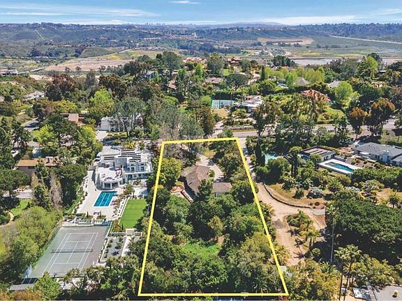The seller will entertain offers within the Value Range of $2,700,000 to $3,100,876. Nestled among numerous luxury estates, this single-level, mid-century modern gem is situated on a 1.06-acre lot in the upscale community of Rancho Del Mar. Maintained impeccably, talented visionaries might nevertheless prefer to make this cozy residence more their own through interior updating. Alternatively, a master plan might include an exciting equity build project which this lot and location can comfortably support. Whatever your choice, this is the perfect opportunity to purchase a prime development lot within an exclusive Del Mar neighborhood. Beautiful mature trees adorn this fabulous lot which frame majestic scenery of the surrounding hills. Picturesque views are enjoyed through every window, exuding a sense of peace and tranquility. Golden rays of light pour through the home creating a light & bright atmosphere, mentoring the perfect mood for the day. Views of your own sun-drenched pool and spa can be enjoyed throughout this lovely residence which offers spacious, multi-level patio space from which to entertain many, or to simply relax in private. Additional Features: Private lot * Minutes away from the I-5 Fwy * Serviced by Nationally respected public & private schools * Located within a few miles of the renowned Solana Beach & Del Mar Beaches, the Del Mar Racetrack & Polo Fields, several wonderful country clubs, the Flower Hill Promenade, and other wonderful shopping centers, lots of fine dining and every type of convenience store you might prefer to frequent. You will be close to hiking, biking, and horse trails. Public Schools: Solana Vista (K-3), Skyline (4-6), Earl Warren (7-8), Torrey Pines (9-12).
