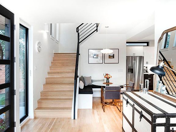 Revel in radiant resplendence in this custom-built Berkeley residence featuring excellent energy efficiency. A lush front lawn and covered front patio invite entry further inside to an open, light-filled layout flowing w/ hardwood flooring. Thoughtfully placed windows illuminate a spacious living room adjoined to a dining area w/ a built-in bench. A gourmet kitchen is impressive w/ quartz countertops, custom designed dual-toned cabinetry, stainless steel appliances and a vast center island. Custom accordion patio doors open to reveal a private, fenced patio ideal for outdoor entertaining. One of three upper-level bedrooms, a primary suite boasts a serene bath and walk-in closet. Nearby, a laundry area is an added convenience. Flexible living space is found in a finished basement w/ eco-friendly Marmoleum flooring, a rec room, fourth bedroom and a bath. A rare opportunity to own a modern, detached single-family home in a desired neighborhood, in spectacular condition! Situated just moments away from shops and restaurants on Tennyson and one block to Berkeley Park, residents enjoy easy access to all the best the area has to offer. High-end systems include: energy efficient appliances, electric vehicle 220V, tankless water heater, insulation that exceeds IECC code, and advanced Carrier HVAC with ventilator, outdoor air filter, and humidifier - all seamlessly powered by 7.37 kW of rooftop solar with 22 panels (owned & transferable).