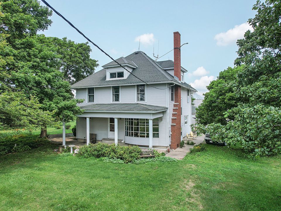 Welcome to your dream country retreat! This charming 5-bedroom, 2-bath farmhouse is nestled on nearly 5 acres of beautiful land, offering a perfect blend of rustic charm and modern potential. This home features five spacious bedrooms and 2 full baths to accommodate family and guests. There is an inviting front porch: Perfect for sipping your morning coffee or enjoying evening sunsets. 2 car Detached Garage & Expansive Pole Barn (54 x 72) ideal for vehicles and storage, a workshop, or your agricultural needs. 3 acres of pasture, perfect for horses, livestock, or gardening. Almost 2 acres of yard with mature trees, providing shade and a tranquil atmosphere. Walk-Up Attic is under construction. This attic could be transformed into additional living space or a cozy retreat. The home may be vintage, but it's full of character and completely livable. With a little TLC and your personal touch, this farmhouse could become your perfect countryside haven. Imagine the possibilities! Don't miss out on this unique opportunity to own a piece of the countryside. Schedule a viewing today and fall in love with the potential and charm of this inviting property! Room sizes approximate, buyer to verify.
