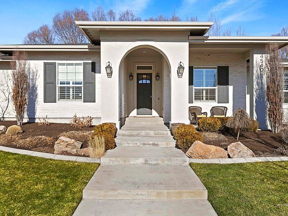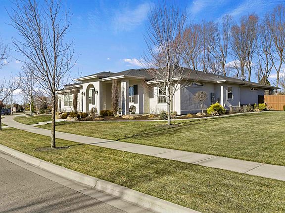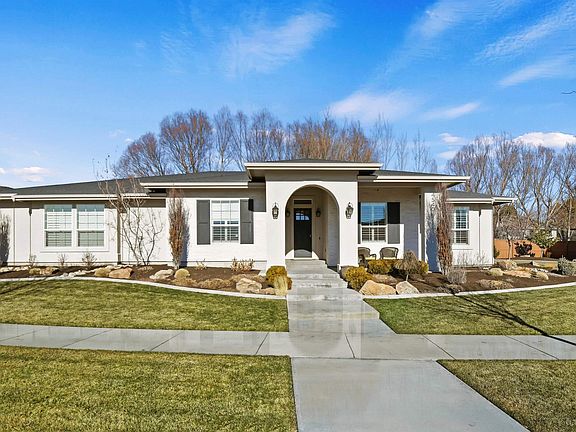 Welcome to your dream home! This stunning single-level retreat offers 4 bedrooms, 2.5 baths, and over 1,100 sq. ft. of garage/shop space with a custom heating system—perfect for car enthusiasts or hobbyists. Nestled on a beautifully landscaped .46-acre lot, N. facing back yard, the home boasts an extended covered patio for entertaining, a remote-controlled water feature, vinyl fencing and permanent Jellyfish accent lights that create a magical holiday ambiance. Step inside to a stellar open floor plan featuring a breathtaking kitchen with a touchless faucet, double oven, gas range, large pantry, and thoughtfully designed upgrades throughout. The luxurious primary suite includes a built-in safe in the master closet for added peace of mind, relaxing soaker tub. This home effortlessly blends style, comfort, and functionality. Located in one of Eagle’s most desirable neighborhoods, this home is a rare find. Don’t miss the opportunity to make it yours!