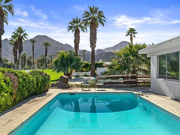 THE BEST VALUE IN INDIAN WELLS WITH NO HOAS! Enjoy iconic Mid Century Modern architecture along the 14th Tee of Indian Wells Country Club Classic Course! Overlooking FABULOUS Views across four fairways, built in 1962, spanning 2250 sq ft, this home is delightfully appointed on a cheerful and charming cul-de-sac! Enjoy the pleasing contemporary vibe this fully remodeled home offers. Take note of the thoughtful details and inspiring finishes including new cabinetry, flooring, beautiful quartz counters tops, lighting, fixtures and more! The open kitchen flows seamlessly into the dining area. Perfect for hosting family and friends! The great room is warmed by an oversized fireplace with loads of natural light from expansive windows. Experience the added value of an enclosed Sunroom with separate cooling system, bringing the outside in. Boasting 3 bedrooms and 2 full baths! The Primary En-Suite serves as a private retreat with an oversized walk in closet and luxurious bathroom offering a spa like setting. Complimenting the Mid Century aesthetic is the low maintenance landscaping and graciously sized pool/spa and patio overlooking the lush golf green, encircled by Mountain Views! Not to be forgotten, is the 2 car garage with direct home access. Indulge in the Indian Wells Lifestyle with NO HOAs! Close to upscale Shopping, Dining, Tennis and Golf! As an IW Resident enjoy many local discounts! THIS IS YOUR LUCKY DAY!