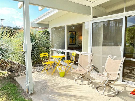 Step into timeless style and effortless comfort with this fully furnished 2-bedroom, 2-bath Mid-Century Modern gem in the heart of Palm Desert. Thoughtfully remodeled, the home blends vintage-inspired appliances with modern updates, including beautifully refreshed bathrooms. Nestled in a quiet, lushly landscaped gated community just moments from the coveted El Paseo district, you'll enjoy premier access to upscale shopping, dining, and art galleries. The property features a distinctively designed pool framed by mountain views, a serene desert setting, a community BBQ area, and proximity to world-class golf, pickleball, and scenic hiking trails making it the perfect retreat for both relaxation and vibrant desert living. Lease Terms: from June 2025 or later to September 30th 2025 for 30 days or more. Another tenant moves in October 1rst 2025 for 6 months. Fully furnished Utilities and Wi-Fi included in rent (electricity included up to $150/month; tenant responsible for any overage) No gas service on the premises Water, trash, and HOA fees covered by HOA, which is paid by the owner Monthly housekeeping required ($125/month paid directly to the housekeeper) No smoking or vaping allowed inside the unit or anywhere on the premises (per HOA rules) No pets allowed No subletting or adding occupants to the lease who are not listed on the original agreement