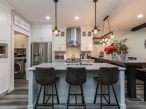 Welcome home to this stunning customized 3 level home with 3 separate kitchens & living spaces in highly sought after Riverstone Heights. Over $100,000 spent in upgrades. This one of a kind multifamily property is minutes away from Cultus Lake, hiking trails, Vedder River & Garrison Crossing. Beautiful open concept main floor features expansive breakfast bar, stainless appliances, gas fireplace, stunning wood beams with glass enclosed balcony offering cozy electric fireplace. Master on the main has large fitted WIC with huge ensuite & heated flooring. The lower level features a spacious 2 bed suite with private entrance & entertainers deck. The ground level is complete with a large one bed garden suite with private patio. Enjoy the outdoor firepit, A/C, double car garage and full driveway. (id:41440)