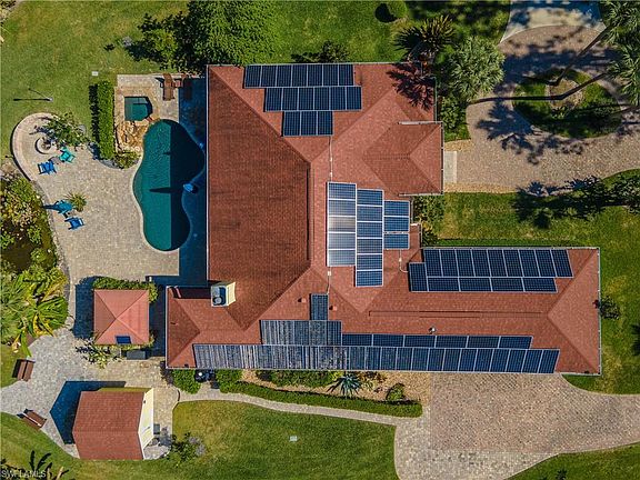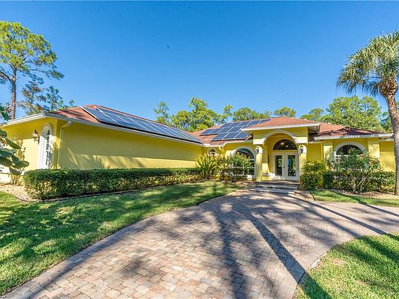 Welcome To Your Private Resort in Naples!!! Imagine waking up in a home where every detail has been curated for comfort, beauty, and independence. This estate blends modern upgrades with natural serenity: engineered wood floors, crown molding, hurricane-rated windows, and a chef’s kitchen with granite island, beverage center, and wine rack. Each of the three bedrooms is ensuite, with the master suite opening directly to the lanai and pool. Step outside to your own tropical resort. Over 4,000 sq. ft. of brick lanai and deck surround a heated Pebble Tec pool and spa. Two gazebos overlook a natural pond and waterfall stocked with tilapia, bass, and bluegill, while lotus flowers and water lilies float across the surface. Evenings are magical by the outdoor firepit, surrounded by bougainvillea, jasmine, and fruit trees including mango, avocado, fig, and mulberry. This property is more than beautiful — it’s resilient. A 21,000-kilowatt solar system with 13,000-kilowatt battery backup, whole-house reverse osmosis, propane storage, and EV charger provide true off-grid capability. Trails, a food forest, wildlife pond, and air rifle range make the back half of the property an adventure all its own. Here, you’re not just buying a home — you’re investing in a lifestyle of peace, natural beauty, and self-sufficiency, all within minutes of Naples’ finest shopping, dining, and beaches.