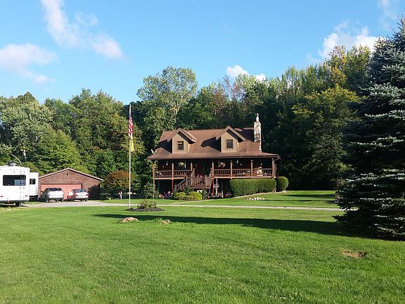 LISTING AT $299,000 BY OWNER. Absolutely gorgeous Log (base is log, upper structure is vinyl sided) home w/ 3 BRs plus Loft. Million dollar views! Private setting 400' back from the rd. 2 fireplaces, one with heat efficient insert and blowers, and one that is insert ready in the basement (currently with coal furnace; optional at time of purchase). 18x36 in-ground pool! Master BR suite w/ 2 Closets. Finished Terrace level w/ Family room, new bath, laundry rm & utility room. 4 car insulated garage wired for power tools/shop! New insulated garage door. More than 8 Private Acres includes woods, cherry trees, raspberries, blackberries, swings and an enclosed sandbox for the kids! Abundant wildlife with private trophy hunting. Underground pet fence & utilities. Home is smoke free, also wired for Hi Def TV. DSL internet avail. 2 mi. to Erie Canal! All new custom windows on the upper level. Upper level of home recently newly insulated and finished with quality vinyl siding. Beautiful wrap around porch with incredible views. Public water as well as fully operational electric well. A Must see! **Middleport voted #1 place in NY to raise a family and top 10 in the US!**