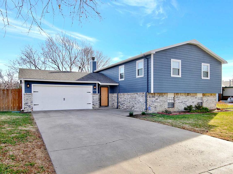 Welcome home to this well-maintained 4bed/2.5bath/2-car bi-level on a large, private corner lot in a quiet cul-de-sac. This home has excellent curb appeal, offering fresh paint with a contemporary color scheme, new exterior light fixtures, mature trees, and low-maintenance landscape. As you enter the home, you'll find that that it's airy and bright, boasting modern fans/fixtures and lots of fresh interior paint. The living room is spacious, opening up to the dining area - both with rich laminate wood floors. The kitchen has been remodeled to include new counter tops, subway tile back splash, new sink and faucet with lifetime warranty, and a full set of appliances for the buyer's convenience. The master boasts a beautiful new 3/4 bath showcasing an elegantly-tiled shower with new doors, tiled floor, new counter tops, and freshly-painted vanity. Both additional main floor bedrooms are clean and bright with ample closet space. The hall bath features neutral colors, tiled shower surround, new counter tops, and freshly painted cabinets. Downstairs in the view-out basement, you'll find a large family/rec room with wood burning stone-faced fireplace, large 4th bedroom with walk-in closet, 3rd bath with lots of built-in storage capacity, and a sizeable laundry/mechanical room. Mechanical upgrades include new windows (excluding the 2 front basement windows), newer sliding door with built-in blinds, high efficiency furnace, and new 50-year siding. Exterior amenities include a newer 8x12 shed, rear deck, patio, raised-garden bed, two new trees (a burgundy maple and a Japanese cherry), and a fully-fenced yard. The neighbors' trees are well-placed, making the yard secluded from the view of others. This home sits in a quiet neighborhood with friendly neighbors, close to K-96, Koch Industries, and Chisolm Creek Park. Deer and wild turkeys are common guests in the area due to the proximity of the park. Finally, this home has no special taxes. They're going fast in this price range and condition - give us a call today before it's gone! *See the 3D tour for a virtual reality walk through of this home.*