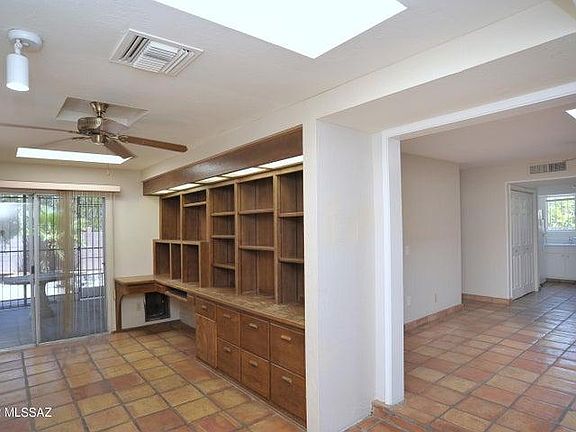 Spacious 3 bed 2 bath home in nice central neighborhood close to Swan & Ft. Lowell. Tile flooring throughout - no carpet! Ac & ceiling fans throughout. Living room with plantation shutters, wood plank look ceramic tiles, & decorative stack stone clad wood burning fireplace. Dining area off living room. Family room off kitchen with skylight. Den with built-in desk & shelving units plus large storage room. Beautifully remodeled master bath with maple cabinets, Travertine tile, mirrored closet door, & large walk-in shower. Private back yard with Citrus trees & flagstone seating area. Two glass sliders lead to screened-in covered patio. 2 car garage with storage room. Additional parking space next to garage. One year lease min. $45 application fee per adult. Renters insurance required. One year lease min. $45 application fee per adult. Renters insurance required.