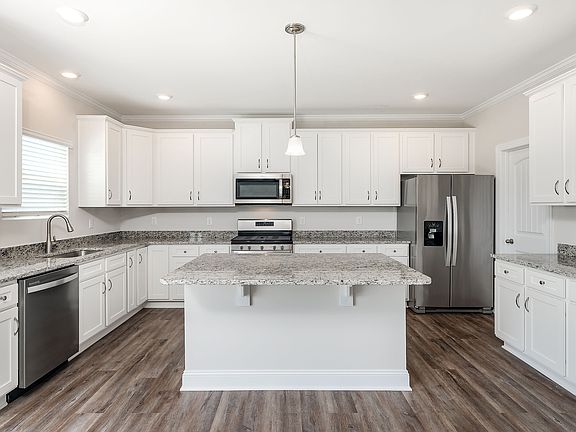 The Sycamore at Stratford is sure to check off of all the boxes on your dream home wish list! Available now in this serene community near Monroe and Matthews, this brand-new home is move-in ready. In this gorgeous home, you will enjoy upgraded interior finishes, a flex space, a downstairs guest suite, and more. Live the life you have always dreamed of in this spectacular home. Several flex spaces ensure your family will make the most of this home. The open-concept layout of the kitchen and family room is ideally suited for entertaining and hosting guests. A downstairs flex room and upstairs loft allow your family to have space for an office, playroom, craft room, or anything else it may need. Stylish design meets desirable functionality in this elegant kitchen. Oversized white cabinetry and upgraded pendant lighting give you a modern look and feel. Plus, a complete suite of stainless-steel appliances, massive kitchen island, and sprawling granite counters make it easy to prepare delectable meals. In addition to an impressive kitchen, you will find upgraded selections throughout the home. Luxurious flooring, high ceilings, blinds on all operable windows, ceiling fans, and more are a few of the details you will notice in this beautiful home.