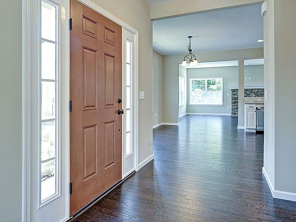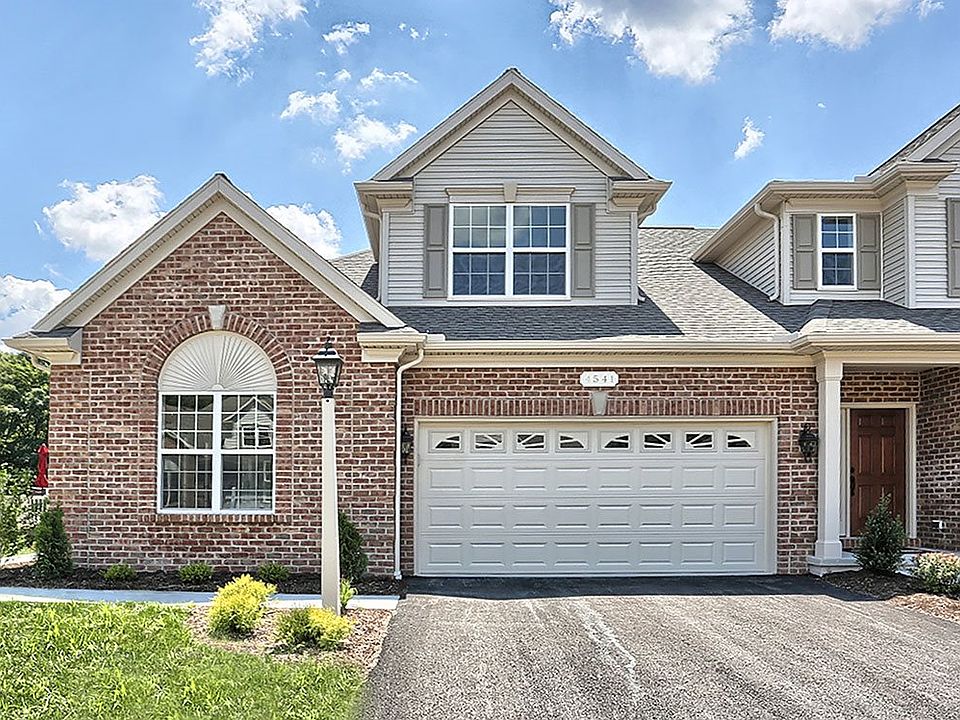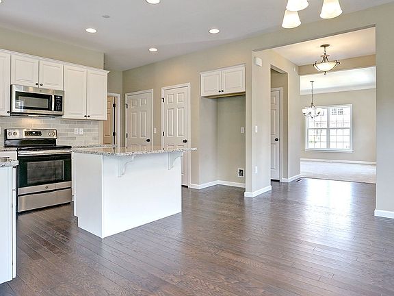 This 2-story end-of-row townhome with first-floor owner's suite includes a private side entrance, 2-car garage, and daylight basement.. Hardwood flooring in the foyer flows to the kitchen, breakfast area, and great room. The kitchen features stainless steel appliances and granite countertops with tile backsplash. Adjacent to the kitchen is the breakfast area which opens to the spacious great room with cozy gas fireplace. Sliding glass doors off of the great room provide access to the deck. To the front of the home is the dining room. The owner's suite sits to the back of the home and features a tray ceiling, spacious closet, and a private bathroom with double bowl vanity and tile shower. The 2nd floor boasts two additional bedrooms, a full bathroom, and a spacious rec room.
