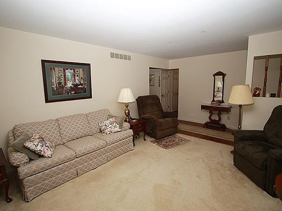 Looking for a ranch on a finished basement? Come and see this wonderfully maintained 3 bedrooms, 2.5 bath brick home located in the popular Southpoint subdivision. Home sits on a beautiful one third acre lot that backs up to a small creek. Enjoy the sun on the enclosed sunroom, or relax in the shade of the lower level patio. Main level features beautiful hardwood floors, large eat-in kitchen, tons of closet space & en-suite half bath. Celebrate the holidays in front of the brick gas log fireplace in the basement's great room. The basement also includes a full bath, utility room with washer/dryer hookups, pantry/storage room & walkout to the patio. Rear access to the attached 2-car garage allows for ample & private parking. HVAC and hot water tank have been replaced in past 2 years. Sold As Is - Inspections Welcome.