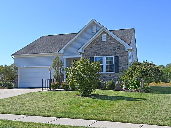 Looking for a fully updated turnkey ranch? This home is a MUST SEE! It sits on .276 acres backing up to a lush green space with gorgeous meadow views. Built in 2011, it boasts 3 bdrms & 2 full baths. Upgrades Galore! The primary bdrm is huge with an attached sitting room/office and walk in closet with on suit bath. The new completely updated kitchen w/glass panel cabinets, walk in pantry, stunning quartz countertops, tiled backsplash and Viking range. It has a cozy breakfast nook with walkout to secluded deck to meadow views. It has a full, partially finished basement with plenty of room to make it your own including 6 GFI outlets making it convenient for office or workshop! Tankless water heater, water softener and new HVAC. 2 car garage has walkout to fenced in side yard. Garage has a fire rated attic door w/pull down aluminum ladder to above garage storage. Includes: washer/dryer, stove/range, refrigerator, microwave & dishwasher.
