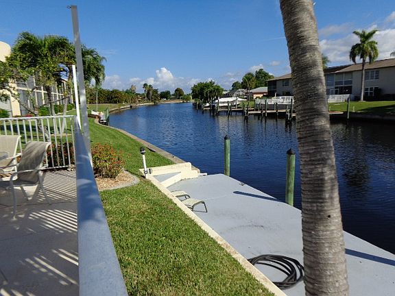 GULF ACCESS, TWO BEDROOM, TWO BATH CONDO CENTRALLY LOCATED IN THE HEART OF SE CAPE CORAL. ENJOY BEAUTIFUL WATER VIEWS FROM YOUR SPACIOUS SCREENED IN LANAI, WITH SLIDERS OFF THE LIVING ROOM AND MASTER BEDROOM. UNIT HAS BEEN BEAUTIFULLY UPDATED, INCLUDING TILE IN THE MAIN LIVING AREAS AND KITCHEN, UPDATED KITCHEN AND BATHS, INCLUDING WONDERFULLY TILED SHOWERS. LARGE WALK IN PANTRY/LAUNDRY ROOM WITH WASHER AND DRYER AND EXTRA SHELVING. NEW SCREENS AND ELECTRIC HURRICANE SHUTTERS MAKE FOR QUICK AND SECURE PROTECTION FOR WEATHER CONDITIONS, OR PRIVACY WHEN WHEN OUT OF TOWN. UNIT HAS A SEPARATE LARGE STORAGE CLOSET. THIS WELL MAINTAINED 55+ COMMUNITY BOASTS A HEATED POOL, A COMMUNITY ROOM WITH LARGE KITCHEN, AND A VERY UNIQUE WORKROOM FILLED WITH TOOLS AND GADGETS TO SATISFY YOUR CREATIVE SIDE. BUILDING WAS RECENTLY PAINTED AND COVERED CARPORTS HAVE BEEN REDONE. BEAUTIFULLY FURNISHED, TV'S, DISHWARE, EVEN BIKES STAY, WITH THE EXCEPTION OF A FEW PERSONAL WALL HANGINGS AND ART. JUST BRING YOUR CLOTHES AND TOOTHBRUSH. MAKE THIS YOUR NEW PERMANENT RESIDENCE, OR YOUR HOME AWAY FROM HOME VACATION GETAWAY. WONDERFUL OPPORTUNITY TO OWN YOUR OWN PIECE OF THE SW FLORIDA LIFESTYLE!