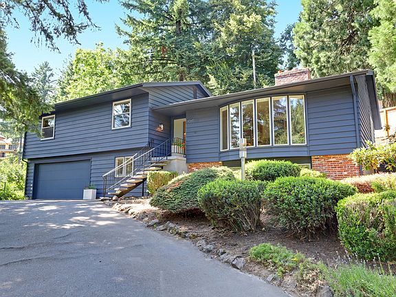 Stylish tri-level nestled in the trees minutes to Arboretum trails, Zoo and Rose Gardens. Spacious and move in ready, this floor plan has great entertaining spaces, generous bedroom level and quiet den/office. Welcoming entry opens to Large living room with fireplace & hardwoods and flows to Kitchen/dining room with fireplace, eating island, stainless appliances, custom built-ins with window seat. The deck can accommodate a party of guests and is completely private. Enjoy a serene setting but be minutes to downtown, MAX or US-26. Award winning schools [Home Energy Score = 2. HES Report at https://rpt.greenbuildingregistry.com/hes/OR10219917]