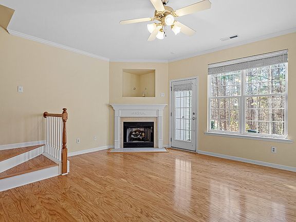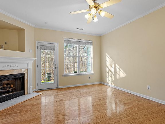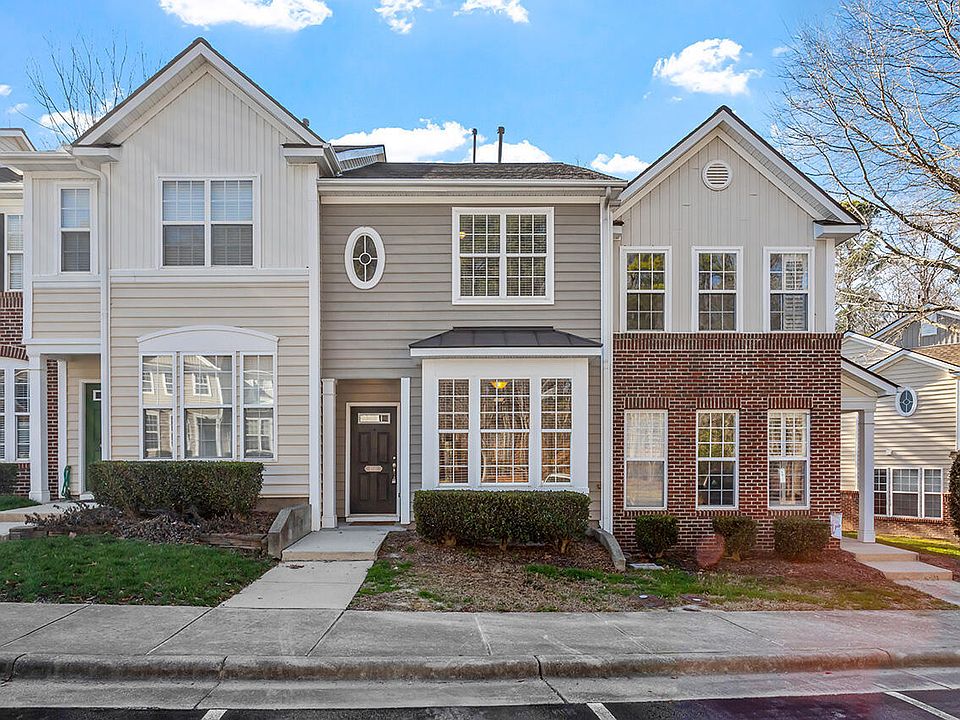 Move right in. Refrigerator, washer, dryer included. Minutes to Lake Johnson, NCSU, downtown Raleigh, Farmers Market, Crossroads shopping center, and more. Two upstairs bedrooms each with its own private full bathroom. Primary bedroom with huge walk-in closet. Hardwood flooring on entire 1st floor, stairs, and upstairs hallway. Gas log fireplace in living room. Private patio with wooded view. Neighborhood park and POOL! This townhome has been well cared for. 2018: new HVAC system. 2019: new Samsung washing machine. 2020: new HVAC zone board. 2022: new water heater, roof replaced by POA. 2023: new Bosch dishwasher, new Samsung dryer, harwood flooring in kitchen, dining, entrance, 1/2 bath.