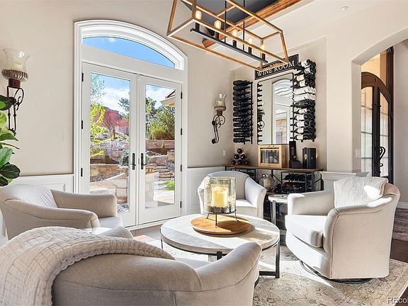 Discover this fully renovated ranch-style home offering breathtaking Front Range mountain views, elegant design, and exceptional functionality. Nestled on a beautifully landscaped lot in a sought-after Colorado location, this home features rare fenced-in yard space, split-rail fencing, and unmatched curb appeal, blending privacy with convenience just minutes from both Denver and Colorado Springs. Step through the custom front entry door into a dramatic two-story foyer highlighted by wood beam accents and rich walnut hardwood floors throughout most of the main level. The thoughtfully redesigned interior includes a spectacular great room with a 20-ft vaulted ceiling and a full wall of windows that showcase stunning mountain vistas. A set of French doors opens to a refined office with custom curved built-ins, ideal for remote work or a private study. The newly renovated gourmet kitchen is a chef’s dream with high-end stainless appliances, quartzite countertops, a wine steward, custom cabinetry, and an open flow perfect for entertaining. The primary suite features a luxurious en-suite bath with a curbless walk-in shower, freestanding soaking tub, and elegant finishes. The finished walk-out basement expands your living space with a spacious rec room, gas fireplace, full wet bar, game room with beverage fridge, and direct access to a covered patio, fire pit, and private pool—an entertainer’s paradise. Upstairs, a rebuilt deck with built-in gas grill and stairs to the lower patio offers seamless indoor-outdoor living and panoramic views. Additional highlights include: Professionally landscaped yard Oversized windows and detailed millwork Updated systems and finishes throughout Access to top-rated schools, dining, and outdoor recreation Every detail has been considered in this move-in ready, luxury Colorado home. There’s nothing left to do but move in and enjoy the view!