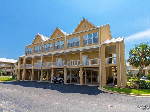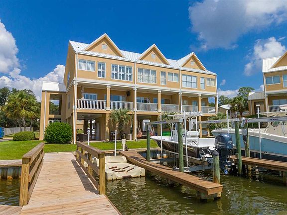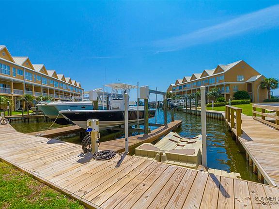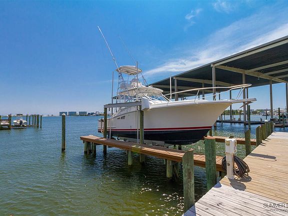 End Unit with Direct Southern View that comes with 2 Assigned Boatslips. One large boatslip has been converted into two slips. Those two slips are located directly in front of this unit. 3rd slip is located on deeper water with easy access to Terry Cove and Perdido Pass. Boatlifts and Furniture are negotiable. This town home style condo has assigned covered parking for 2 cars, large storage closet downstairs, updated kitchen with customized cabinetry, granite countertops, under cabinet lighting and subway tile backsplash. Plantation shutters throughout main living area, master bedroom & bathroom, and 2nd bedroom. Master Bathroom has 2 vanities, jetted tub, and shower. On main level: Tile flooring thoughout, full bathroom with updated shower doors, laundry closet, pantry, and open living/dining area with expansive balcony. Jack and Jill Bathroom upstairs for the guest bedrooms. 3rd Guest Bedroom is large enough to be a multi-purpose room! Can be an office, exercise room, guest bedroom. Walker Key is a very popular complex and neighborhood. Welcoming feeling, pet friendly, 2 swimming pools, spacious grounds that are well maintained. For the fisherman, the location of Walker Key is ideal! Quick and easy access to Perdido Pass and Gulf. HVAC & Hot Water Heater were recently replaced (approx 1 to 1.5 years old). Low monthly fees! And incredible price for this large of condo with slips to accommodate up to 3 boats!