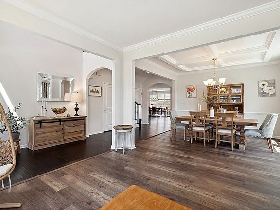 This exquisite residence stands a luxury living in the coveted Walnut Ridge. A contemporary exterior and 3-car garage set a distinguished tone. The open layout seamlessly connects the entry, living rm, and coffered ceiling dining rm, creating a spacious and refined ambiance. The gourmet kitchen boasts a grand island, granite countertops, upscale appliances, and a huge pantry, ideal for culinary enthusiasts. It seamlessly opens to Family rm and Morning rm. a convenient first-floor office to complete the first level. Upstairs, a spacious master suite w/ tray ceiling & spa-like BTH awaits, along with a fourth BR with its own full bath. A second-floor laundry adds convenience. The finished walk-out lower level is an entertainment haven, featuring a theater/exercise rm, game rm, wet bar, and full BTH. beautifully landscaped fenced-in backyard and inviting deck provide a serene retreat. Conveniently located near shopping, dining, and major highways, this home offers luxury and convenience.