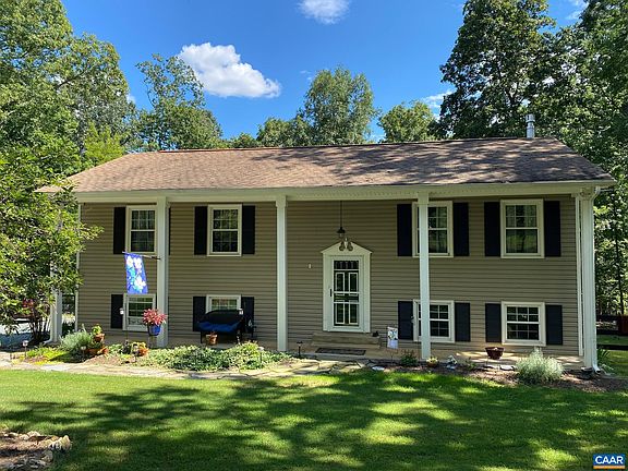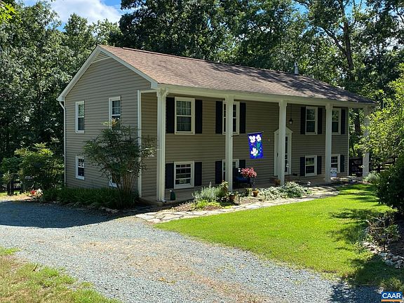 Reduced! Located in Albemarle Co (not Fluvanna Co), our 4 bedroom, 2.5 bathroom split level home is set on 2 private and shady acres just minutes from the Interstate and close to Keswick Golf Club. We feature a recent new maple custom kitchen with granite, a new elevated rear deck and a spacious storage shed in the pet friendly fenced back yard. There are recent new hardwood floors on the main level and the basement family room has a new Jotul gas fireplace. There is a window warranty from Window World and a couple of years left on the HVAC warranty. Insulation was added via the LEAP program.