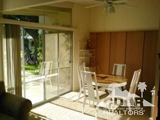 Fee Land!!! As you walk into the door, overlooking the pool with southern mountain views, you will know you are at home. There are 2 bedrooms with tons of closet storage, the master has private enclosed patio and 2 bathrooms. Vaulted ceilings, newer carpets, tile, paint, a/c and heat plus all furnishings are included. The sought after Village Greens development offer meticulous landscape with beautiful pool and cabana, laundry facilities, Bar-b-Que and a terrific South Palm Desert location and the Monthly dues are only $300.00 per month.