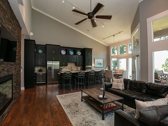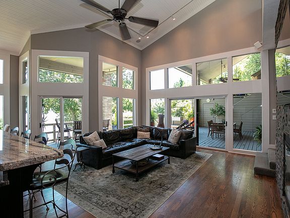 Two Tree Island Estates lakefront, completely remodeled 3-story, 3,345 s.f., 4 BR 3.5 BA, furnished, beautiful outdoor living with hot tub, large open living space with fireplace, hardwoods, tile, granite, 104 feet of shoreline with a gentle slope to swim dock and a 12 x 32 foot boat slip in community dock.