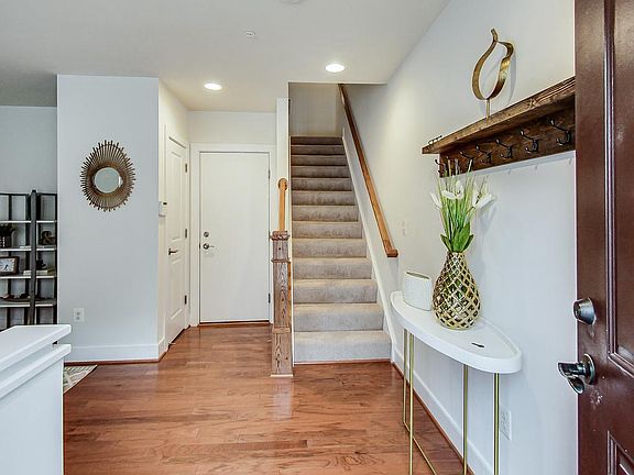This meticulously well cared for townhome boasts 3 bedrooms, 3.5 bathrooms, a first-floor office/den, hardwood floors, carpeting, recessed lighting, a washer & dryer, multiple outdoor spaces, and a one-car garage. The main level (2nd floor) has an open concept floor plan with a gourmet kitchen featuring stainless steel appliances, granite countertops, sleek cabinetry, a spacious breakfast area, and a light-filled living room with a fireplace. Enjoy your morning coffee on the balcony located right outside the kitchen. The 3rd floor has a large primary suite with ample closet space, a full ensuite bathroom, beautiful tile floors, double sink vanity, a soaking tub, shower, a second bedroom and a conveniently located washer and dryer in the hallway. The large primary light-filled bedroom is warm and inviting. The second bedroom can be used for a guest room or home office. The fourth floor can be used as a second primary bedroom or a flex/entertaining area featuring an ensuite full bath, and a stunning rooftop terrace with panoramic views, and plenty of room for seating and a fire pit or grill. This home is close to everything you need, with easy access to Whole Foods, YES! Organic Market, Federalist Pig, Busboys & Poets, Franklins, Vigilante Coffee, Streetcar 82, and other local breweries and neighborhood shops. Enjoy jogging/biking on the Trolly Trail or one of the numerous trails or parks nearby. The HOA includes access to the Lustine Center gym, pool, business center, lounge, pool table, tot lots, and a community shuttle to the Metro. Only a half-mile to Riverdale MARC station and 6 miles from downtown DC.