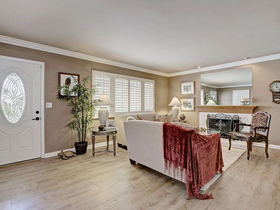 Just the home you have been waiting for. Welcome to this Beautiful 4 bedroom 3 bath home with a master bedroom on each floor. Step up to the charming & inviting front porch and into the large light and bright living room with a cozy fireplace and wood like floors. The dining room is right off The Open Kitchen which offers a stainless steel gas Range & hood, porcelain sink, bar seating and a large mud room with a door to the back yard. The kitchen looks out to the expansive family room offering a dramatic rock fireplace, large picture windows and sliding glass doors leading out to your private back yard. Walk upstairs to the second master with mirrored closet doors and a master bath with shower and tub combination. Downstairs offers three more bedrooms and two bathrooms. The downstairs master offers a walk in tub. The home features, recessed lights, ceiling fans, crown molding, newer windows, shutters throughout and designer colors. This home has an interior tract location, close to Huntington harbor, walk to parks and schools.