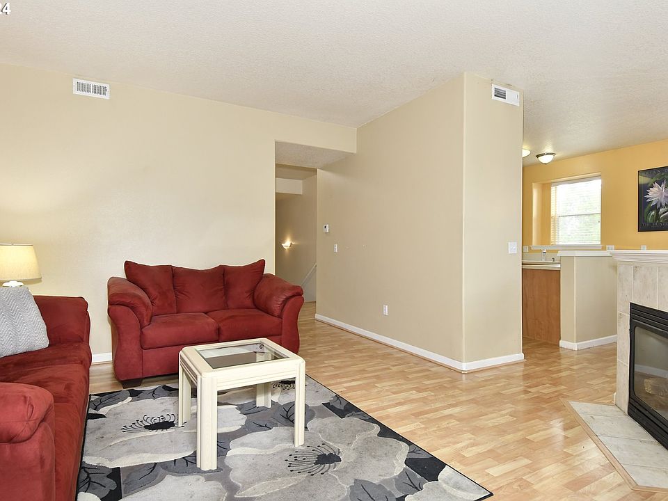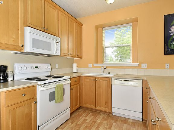 Easy care condo living. 9' ceilings and abundant natural light. Features include a large kitchen with a pantry, Gas fireplace divides the living and dining room. 2 bedrooms and 2 baths. Large primary suite with walk in closet. Dedicated laundry room. Covered deck. Attached garage. Newer roof and gutters in the last 2 years. The community amenities include a pool, hot tub, weight room, meeting room with kitchen. Also a playground and large designated dog area, ideal for those seeking comfort, convenience, and a vibrant community atmosphere. Excellent location close to transportation, shopping and walking distance to the Springwater Corridor!! HOA covers exterior maintenance, common areas, clubhouse, water, garbage and sewer.