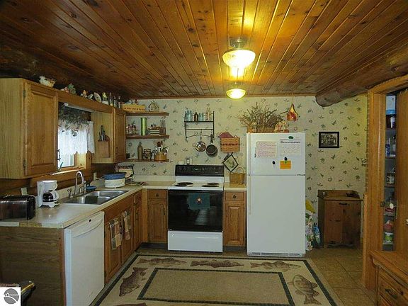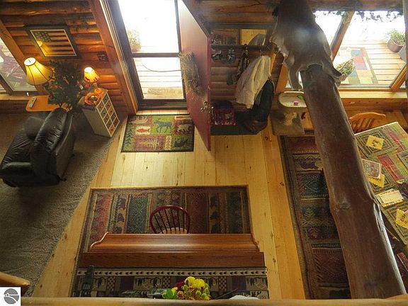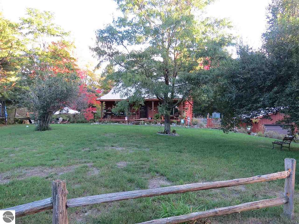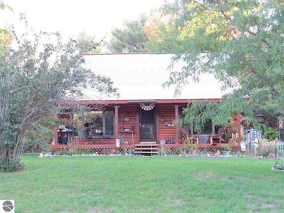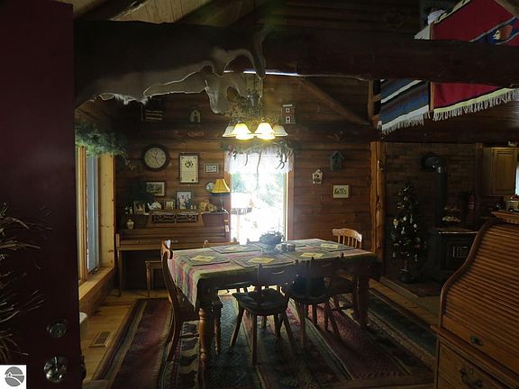 Cute log cabin tucked away in a beautiful woodsy setting off the main highway of US 131. Main floor master bedroom and laundry. Spacious family room with a walkout and day light windows. Over 6 acres that border thousands of acres of state land, with access to state trails, multitudes of wild life. A Snowmobiler and Hunter's dream.