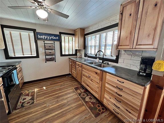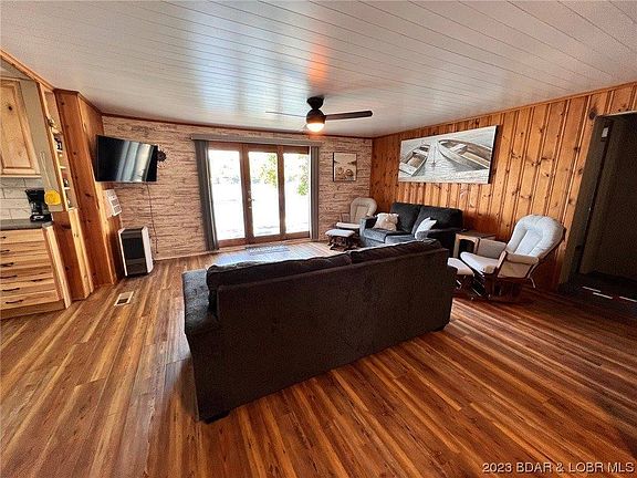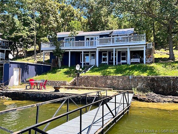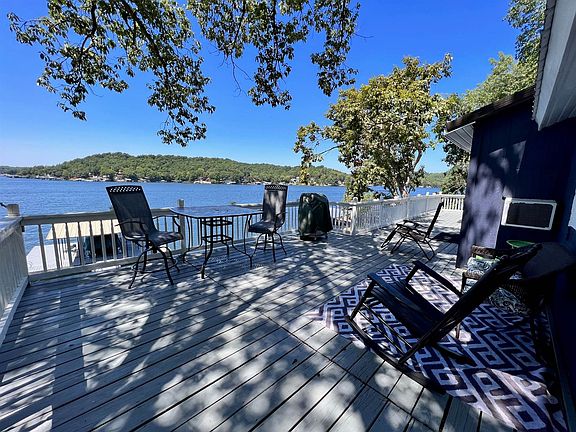 STUNNING Views from this Waterfront Home! Located in Indian Creek Cove at the 6MM of the Gravois- PERFECT! In the Past Year the Home has had many updates - New kitchen, New Metal Roof, New Septic, New Boat Lift, New Plumbing, New Water Heater, New Window/Wall Ac's, Fresh exterior Paint, New Vinyl Plank Flooring and more! Home features 3 bedrooms, 2 baths (Master Suite w/private bath w/new walk in shower), charming Knotty Pine walls, Stainless Appliances in Kitchen, Large Decks to enjoy the amazing View, Open Floorplan, Unfinished Basement and Covered Patio off of Walkout basement. Located on a fantastic lot with 150 ft LF, Lakeside Patio Area, 1 well dock with Boat lift, Natural Rock Shelf along seawall (so Pretty), Deep water year round and one of the BEST views at the Lake! Did I mention the Great Parking.... it has it all!