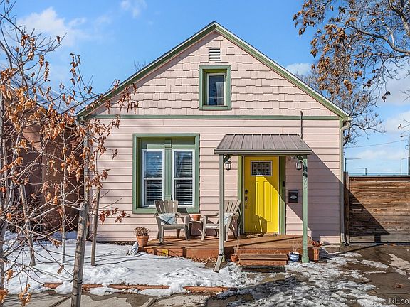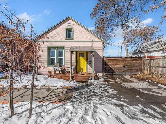Loaded with charm and timeless character, this 1893 historic home in Elyria-Swansea has been fully updated with modern conveniences. Nestled in a rapidly developing community, it offers easy access to some of Denver’s best spots. Just a mile from RiNo, to quickly to enjoy top-rated restaurants, bars, and entertainment like Black Shirt Brewing’s trivia nights, Fish N Beer’s famous fish & chips, and rooftop drinks at CatBird. The neighborhood is full of amenities. Three playgrounds, including one with a splash pad, are within a 5-minute walk, and the Elyria-Swansea Rec Center—just a couple of blocks away—is adding a new indoor pool. A soccer field is right across the street, the library is a short 10-min walk. With quick access to I-70, trips to DIA or the mountains are a breeze. A small weekly farmers market adds to the neighborhood’s charm and strong sense of community that makes this street feel like home. The backyard is an entertainer’s dream, featuring a shed converted into a darts bar, a fire pit, and a sunshade for warm summer days. The raised garden beds have produced an impressive harvest and ready for your springtime planting. A chicken coop with hens that lay fresh eggs daily can be included. The oversized driveway is a rare find in the area, accommodating a truck or even an RV behind the fenced space. Inside, the open-concept living and dining area boasts tiered tray ceilings. Find ceiling fans in every room! The stylish kitchen features stainless steel appliances, white shaker cabinetry, and a beautiful tile backsplash. Two main-level bedrooms and a spacious upstairs bedroom with a walk-in closet provide plenty of space. The nicely updated bathroom completes the home’s inviting layout. Recent updates include a new water heater (2023), laminate floors (2025), carpets (2025), front and back decks (2024), raised garden beds (2024), a chicken coop (2023), and a shed-to-entertainment conversion (2023). Move-in ready and packed with character—welcome home!