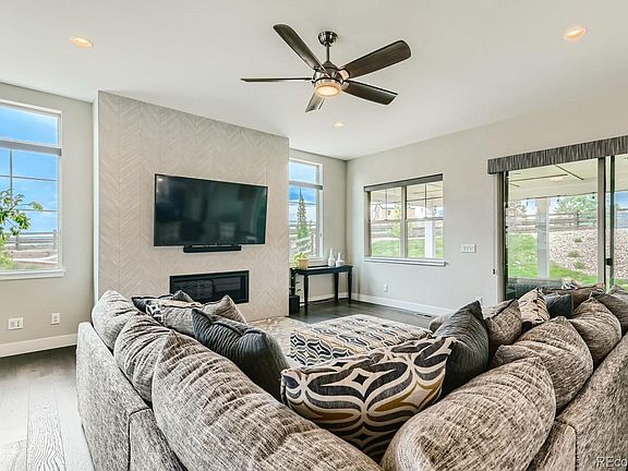 Barefoot Lakes Best Value! This exquisite home is better than new! Beautifully designed and meticulously maintained executive style home is perfect for everyday living and entertaining! Designer touches and custom upgrades can be seen and felt throughout this amazing home. With over 4,500 finished sq ft, this magnificent house has enough space for family and friends. You will be impressed from the moment you step foot inside and see the stunning yet cozy living area with beautiful stone fireplace that opens to every chef's dream gourmet kitchen complete with upgraded Bosch appliances and massive granite island that is perfect for large gatherings and entertaining. Even the mudroom has custom cabinetry built in for additional storage. There are two additional rooms on the main level that could be used for family game nights, a home office (or two), private library there are so many options, this home offers so much space and versatility! Upstairs there is a large loft area as well as 3 spacious bedrooms with the primary bedroom offering a serene escape with amazing views of the front range and a spa-quality en-suite with custom built ins, separate water closets, walk through shower and easy access to upstairs laundry room. The lower level offers plenty of space for entertaining with game area, large conforming bedroom with huge walk in closet and 3/4 bath. No need to look any further, this beautiful home has it all! You won't want to wait on this one! The Harvest Three floorplan is no longer available and finding a home of this caliber for under $193 per square foot is unheard of in this market, don't let this opportunity slip away!