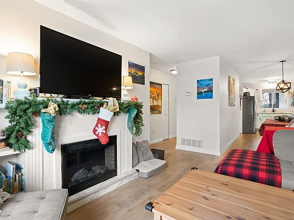 A lovely 2 bedroom upper floor end unit townhome! It comes with stainless steel appliances, new laminate flooring, new kitchen backsplash, a good size dinning area with a cozy living room and a private balcony off the living room with a separate storage space. A spacious bedrooms with a mountain view from the second room. Conveniently located within walking distance to everything you need grocery stores, mall, restaurants, parks and schools. A well-kept family friendly 36-unit complex with affordable maintenance fees. It comes with covered parking and a guest suite that can be rented. Contact me today to book a showing. This home will not last long!