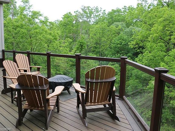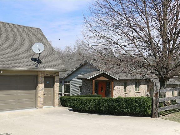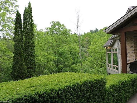 Executive architectural home on approximately 6 acres of property. Perched over a setting that changes with the seasons overlooking beautiful ravine views with the sounds of the babbling brook below. Located on a quiet country road ideal for nature lovers looking for serenity yet just mins. to London. Nearby Sharon Conservation area! Separate guest suite or home office (with high speed internet available) above the 2 car heated garage. Maintenance free Trex decking along the entire rear of home and upper guest room. Open concept engineered and designed to encompass natures beauty. Large windows, extensive decking allows a multitude of views. Here are just a few features, registered R2000 insulated home. Vaulted ceilings, hardwood flooring, gas fireplace. Beautifully upgraded primary ensuite bath with walk-in shower, heated floors and granite top kitchen. Leaf filter gutter guards installed in Sept 2019. Large and inviting sunroom offers idyllic view of the forest, Sharon Creek and ravine. Heated garage. Survey is available. A rare opportunity to own 6 acres of a natural wonderland.