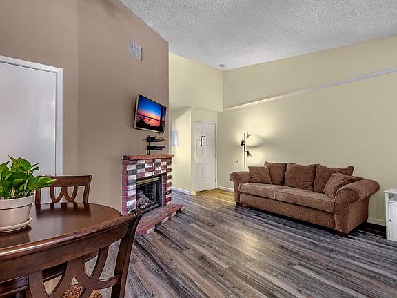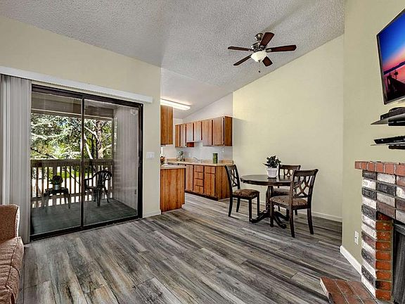 Your new home " a townhouse" is located in The Village at Donner Creek, surrounded by beautiful mountain ranges and the townhouse itself is surrounded by mature trees. Enjoy your evenings in a cozy environment , living /dining room combo, fireplace and 14' vaulted ceilings. The private patio will allow you to enjoy your afternoons outdoors, close to pool. Upper floor unit. New laminate flooring, new AC unit. Owner has kept it well maintained, so it's move in Ready! Easy to show, 1 hr min requirement.