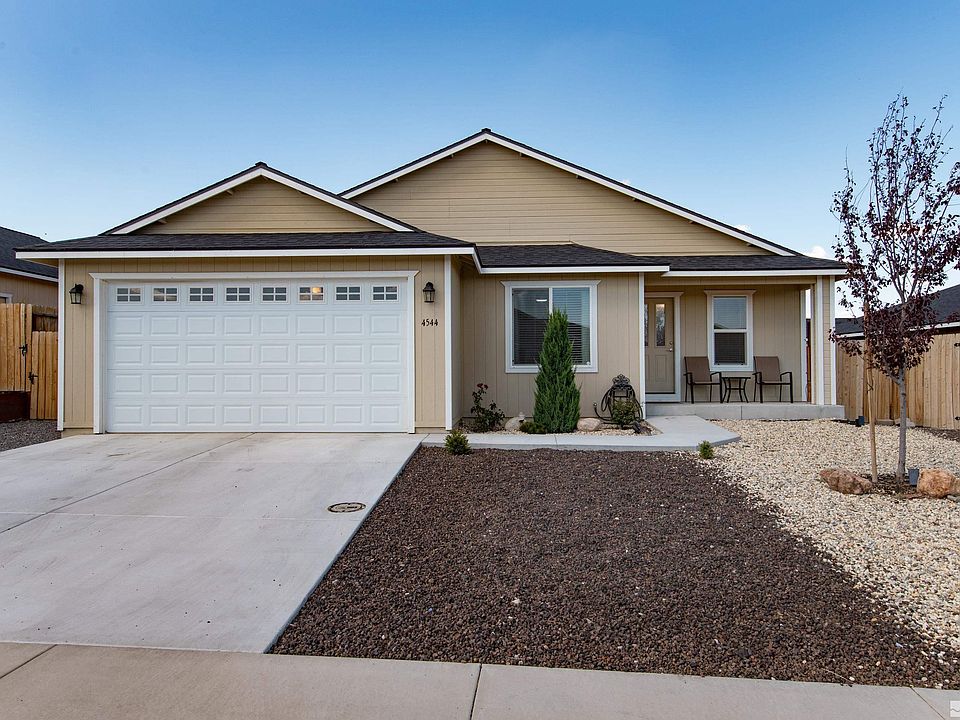 Make your new home at 4544 Rutledge Street Fernley, NV. This spacious 3-bedroom, 2 bathroom, 1630 square feet is ready for its new owners. As move-in ready as a home can be, only 3 years new, it is well cared for both inside and out. Inside you will find a great room concept to keep the entire family together for all occasions. With high ceilings, painted cabinets, granite counter tops and a whole house Puronics water softener system. The garage has epoxy painted floors., In the front yard you will enjoy xeriscape landscape with room for RV/Boat/Toy storage on the side yard. The backyard oasis includes artificial grass on one side separated by pavers and a covered pergola leading to real grass on the other side. There is also a covered patio and fire pit area for evening entertainment. On one side of the house you will find concrete work with a shed that will remain with the property.