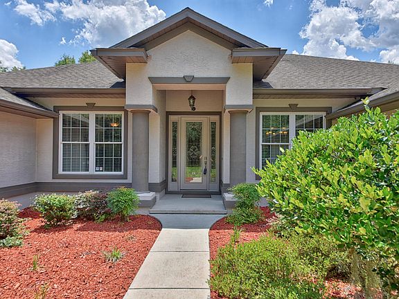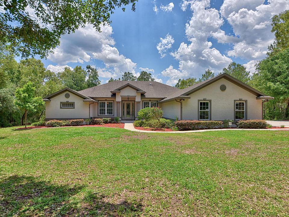 This one of a kind, gorgeous extremely efficient custom built home with wonderful curb appeal is located in Ocala Waterway Estates. Walking into the foyer of this home you can see the many extras touches that were put into this home! This home has a split bedroom plan with 3 bedrooms, 2 baths, flex room and 3 car garage. The great room has vaulted ceiling and surround sound, perfect for entertaining! Kitchen with staggered cabinets, soft/self close drawers, and granite counter tops. Light and bright large master bedroom has tray ceiling. Master bath has cultured marble, wood cabinets with soft/self close drawers, a jacuzzi, large walk in shower, and double vanity. There are ceiling fans in every room, tinted low energy windows and an 80 gallon solar hot water heater.