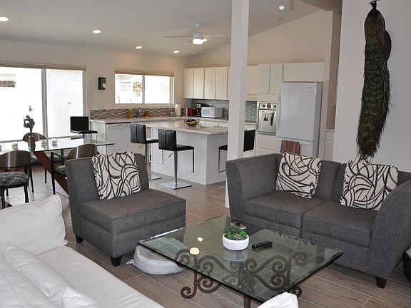 Walking distance to El Paseo, heated salt water pool, jacuzzi and beautiful furniture! Please click on the link to see the house! Owner pays electric $150 and water $100 up to these caps. Tenant responsible for charges over that. No credit check required. One to six month rental. Attached Casita has a quiet tenant. Available now through May 2021! Won't last!! Book now!