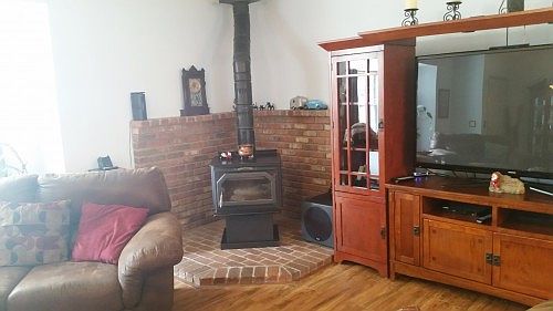 Private with views of the valley & city lights, open floor plan, beautiful wood floors, vaulted ceilings, large living room w/wood stove, windows to enjoy the views, kitchen has updated granite counters, wood cabinets, double sink, newer glass top stove, breakfast bar, eating area, hall bath has been updated with a new tiled shower/tub, master is a good size with private bath, dual sinks, large tiled walk-in shower, Pella french doors take you to your back yard, oversize garage with workshop area. Step outside enjoy all the views, outside buildings, portable garage/RV cover, completely fenced and cross fenced. Additional 5 acres can be purchased and available to buyer of this home only but has to sell together.Otherwise seller will keep the additional 5 ac and only sell home