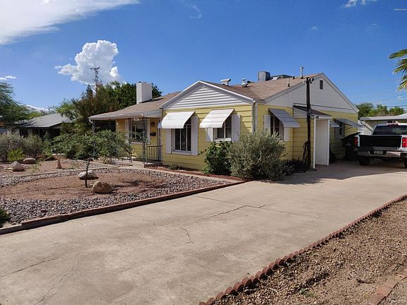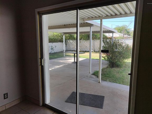 Brick home with yellow aluminum siding. Fenced grass lawn in back. Covered patio, newer appliances. All tile floors.