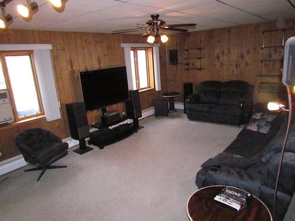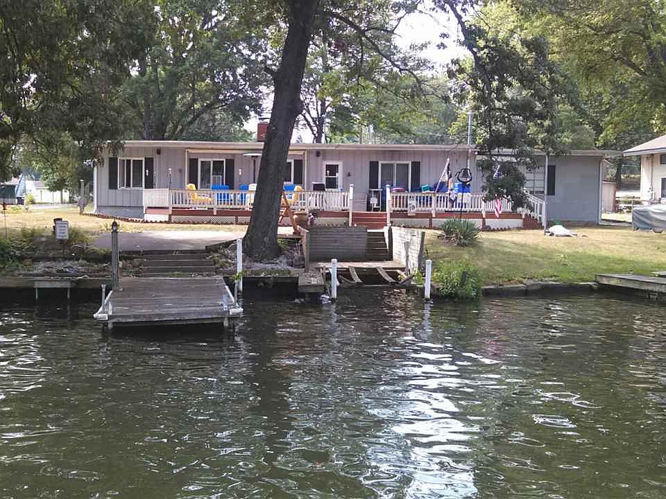 This neat lake level year-round ranch home features 3 bedrooms, 2 full baths, and a 2 car attached garage. It has a spacious living room with wood burning fireplace, dining room, convenient kitchen, and laundry room. Appliances included; two refrigerators, stove, washe/dryer, microwave, and chest freezer. Home has a newer roof, boiler, and water heater. Spacious deck, 52x14, overlooks a quiet bay with the open view of the lake. Deck also has a Sun Setter awning, 16x9, with screen attachment, to make a nice shaded screen room. 115 feet of lake front property with concrete seawall and includes 4 piers. Remote covered boat lift is negotiable. Huge back yard with 3 small flower gardens.