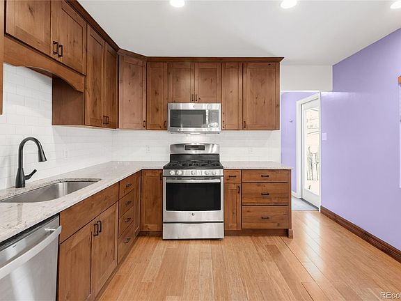 Tucked away on a quiet, tree-lined street in University Hills, this beautifully updated home offers a perfect blend of charm and modern convenience. Inside, large windows flood the living space with natural light, highlighting the rich hardwood floors and elegant crown molding. Updated light fixtures add a stylish touch, creating a warm and welcoming atmosphere. The spacious, renovated kitchen is a true showpiece, featuring custom cabinetry, sleek granite countertops, a classic subway tile backsplash, and high-end stainless steel appliances. Just off the kitchen, the dining area provides a seamless space for both casual meals and formal gatherings. A bright and airy sunroom overlooks the impeccably maintained backyard, offering a versatile space that can serve as a home office, creative studio, or additional living area. Down the hall, three comfortable bedrooms—including a generous primary suite with ample closet space—share a beautifully updated full bathroom. The well-planned laundry room adds convenience with extra storage cabinets and a utility sink. The attached one-car garage is designed for efficiency, featuring built-in storage solutions and a newly installed Level 2/220-volt EV charger. Energy efficiency is a key highlight, with upgraded insulation and solar panels working together to keep utility costs low year-round. Step outside to a private backyard retreat, perfect for relaxation or entertaining. The fully fenced yard offers ample space for gardening, outdoor games, or weekend barbecues. A storage shed keeps tools and gear organized, while the large patio is an ideal spot for hosting friends and family. Enjoy the convenience of nearby shopping, dining, and grocery stores just a short walk, bike ride, or drive away. With easy access to parks, the Harvard Gulch Trail, light rail, I-25, and Colorado Boulevard, this home offers an unbeatable location with everything at your fingertips.