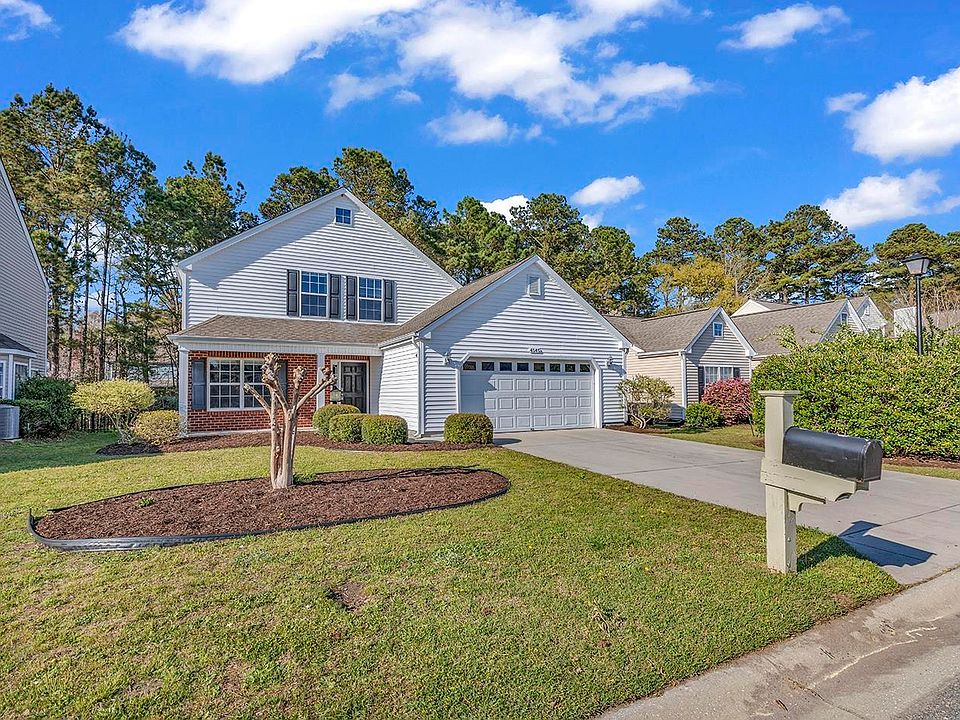 This 4BR/3.5BA home in the popular Farm at Carolina Forest backs to a wooded preserve area on a quiet street. All the bedrooms are spacious and this home features two master suites, one on the first floor and one on the second floor. A nice size living room with ceiling fan, Master Bedroom with ensuite, eat-in kitchen, and half bath are located on the first floor. The Kitchen boasts plenty of bright white cabinetry. A double sink, electric stove/oven, microwave, dishwasher and stainless-steel refrigerator allow for all the conveniences in a well-designed space. Additionally, the dining area is large, bright and has a great sliding glass door view of the private backyard and surrounding woods. The first floor Master Bedroom is a very nice size and includes a walk-in closet. The ensuite bath has a vanity, nice glass enclosed shower and storage closet. Rounding out the first floor space is a good sized half bath. A surprise second Master bedroom with an ensuite that includes a large soaking tub is a great resource for peace and relaxation. This second Master Bath also has a nice glass enclosed shower, and his/her closets. The second floor consists of two bedrooms with great natural light, ceiling fans and ample closet space. The home floor features mostly LVP material. Talk about curb appeal! The brick and vinyl exterior are both practical and attractive. And the neat, manageable landscaping has been recently mulched and ready for the Spring/Summer bloom. Also has an irrigation system. This home features an oversized two car garage with room for workspace, storage and a washer and dryer. Amenities include an 8000 square foot pool with clubhouse, a smaller pool, fitness room, basketball courts, playground, and more. The Farms is a family-oriented community and is in the heart of a highly rated Horry County, South Carolina school district. Convenient location just minutes from beach, shopping, dining, golf, Broadway at the Beach, medical facilities, hospitals, Myrtle Beach International Airport, Highway 31, Ocean Bay Elementary and Middle schools, and so much more.