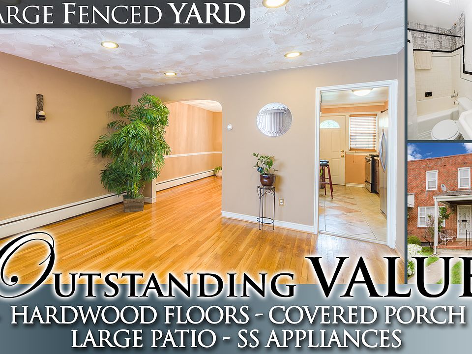 MOVE-IN READY UPDATED ROWHOME WITH 3 FINISHED LEVELS AND LARGE FENCED YARD! Hw floors throughout, spacious living room, sep dining room w w/ chair rail, updated kit w/ ss appliances & tile backsplash, upper level w/ 3 bedrooms & 1 full bath, partially finished basement w/ rec room & laundry/storage area, & large fenced backyard!