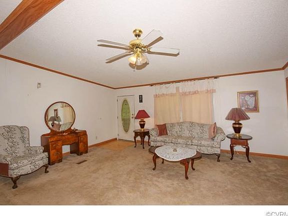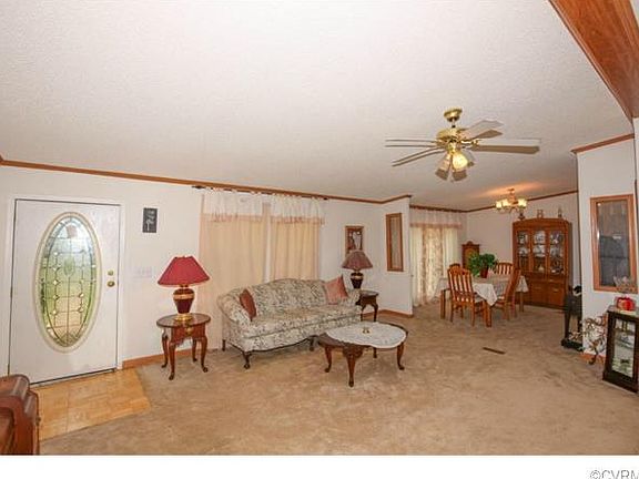 Spacious one level manufactured home on lovely 2+ acres, circular driveway, convenient location near schools, easy access to Rt. 60, just a few minutes from Rt. 60 & Rt. 522. Home features large living room, opens to formal dining room, kitchen & family room with stone fireplace and sliding glass doors to rear deck. Covered front porch to relax and enjoy the setting. King-sized master bedroom with attached office/sitting room, large walk-in closet & luxurious master bath with double vanity, garden tub & separate shower. Home has lots of natural lighting with large windows and skylights. Laundry room has its own exterior door. Easy maintenance siding. Plenty of room to enjoy the outdoors and gardening.