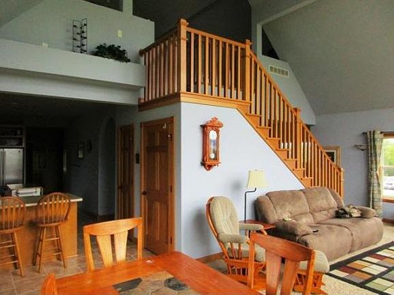 Energy Star home w/pond & sunset views on almost 10 acres w/ATV trails. Great room has wall of windows & soaring ceilings. 2 pantries in kitchen. 3 main floor bedrooms. Walk-out lower w/8' ceiling & theater room. Insulated garage w/water, floor drains & basement access. Unfinished area in upper & lower could expand sq ft to over 4100. Asking price based on finished areas only. Sq ft per seller.