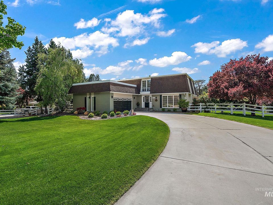 Incredible opportunity just minutes from Eagle Rd and The Village, while preserving the large lots and open character of the Big Sky Neighborhood. Build an additional dwelling unit, keep livestock, small animals or related agricultural uses while nestled on nearly an acre of private stunning parklike property with no HOA. Enjoy the large 40 x 17 covered back patio or Theatre Room downstairs. The kitchen features a large center island/double ovens—ideal for gatherings and holiday hosting. The home is designed to offer peace and relaxation. This home offers a large game room downstairs, fireplace in the dining room, large finished fire pit in and jacuzzi in back yard, two story play set with swings/slides and a large organic garden w/fully fenced chicken coop and run fenced in. Enjoy lush landscaping and separate entry to utility room through back yard. This home is situated at the end of a culdesac with a wide long drive allowing access to the back of the property, perfect for boat, trailer and RV parking.